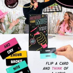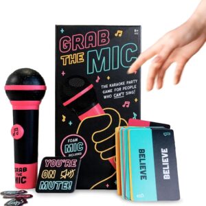 INSIDE – With 125 word cards, a foam microphone, game board, player tokens, and easy-to-follow instructions, everything you need for a memorable game night is included. Get your friends and family together for hours of musical entertainment with Grab The Mic!